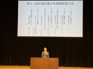 氷見青年会議所の紹介と方針説明では、赤壁理事長が「地域の新たな魅力の発掘」「ブランディングや共感を高めるための情報発信と交流」「JCの理念を理解した上での会員拡大」の3つに重点を置き活動を行っていく抱負を語りました。