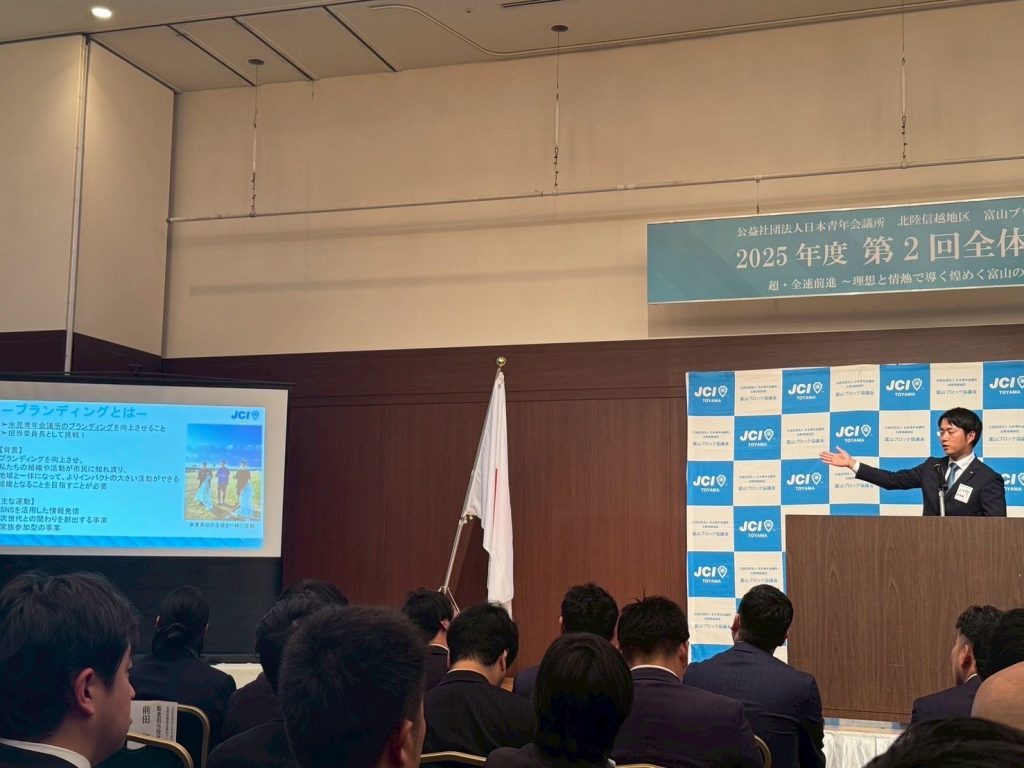 今年度の運動の成果を共有する「煌めく富山Nine LOM AWARD」には、氷見JCを代表して光澤委員長が登壇し、ブランディング向上に向けた挑戦について発表いたしました🎤